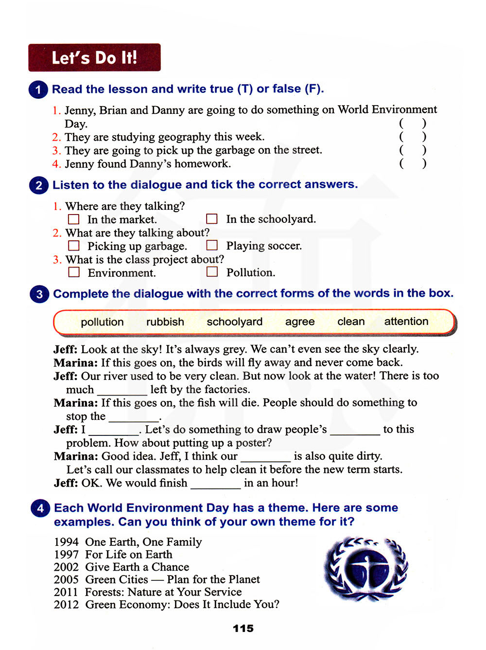 珍妮,布莱恩和丹尼在世界环境日这天要做一些事情。这周他们学习地理。