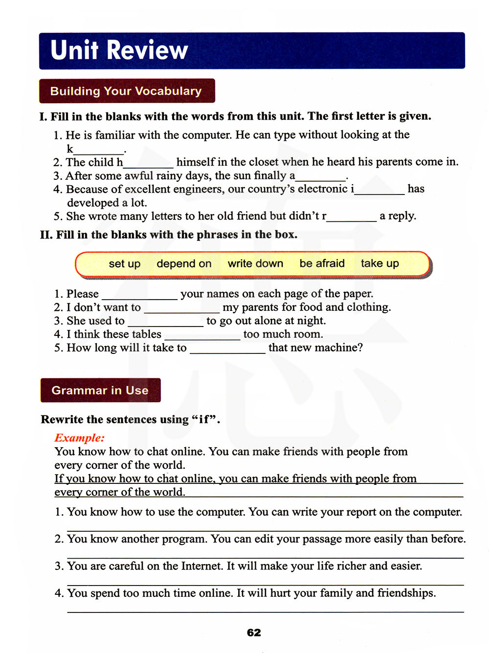 用"if"改写句子。