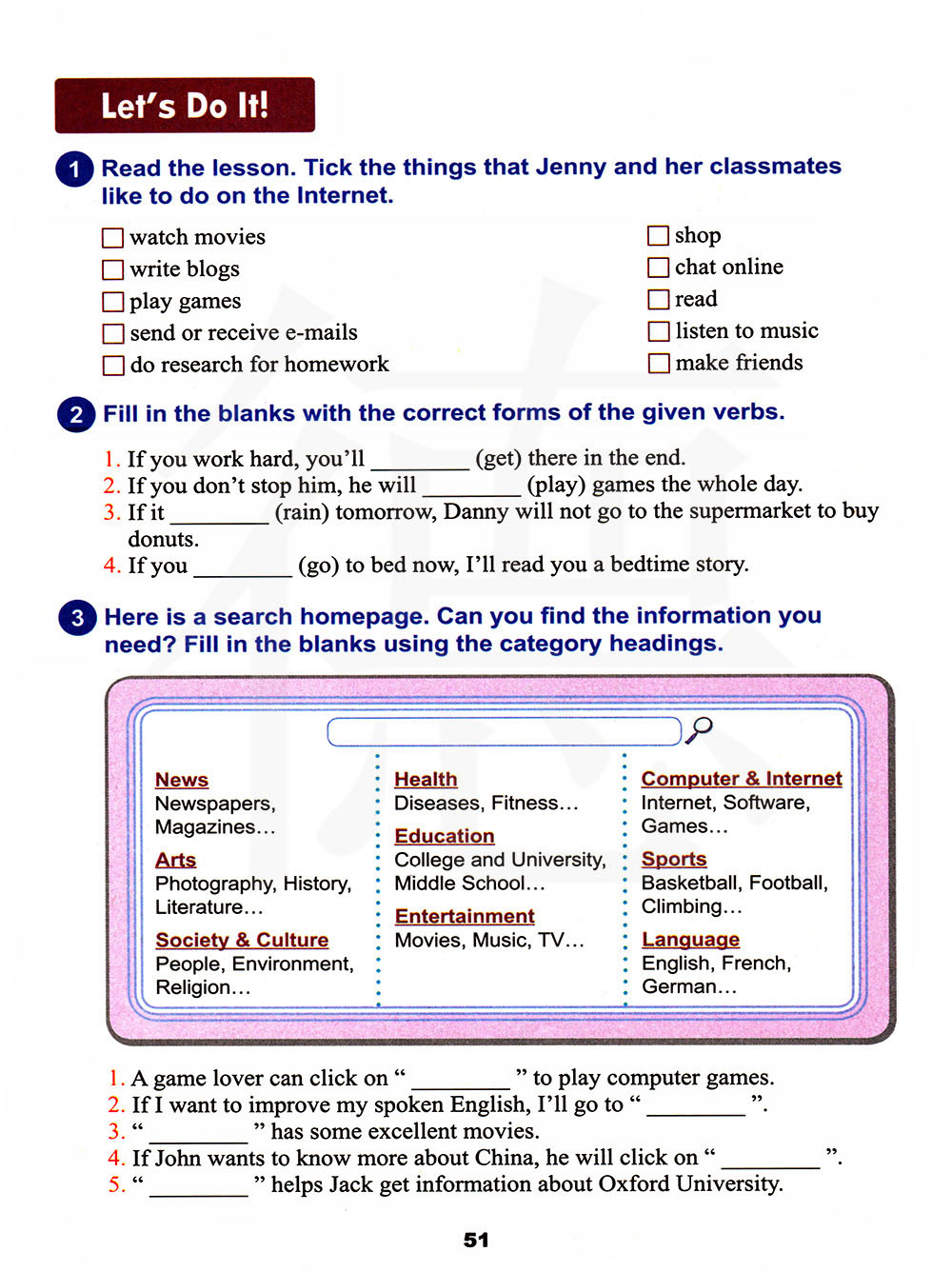 这是一个搜索主页。你能找到你需要的信息吗?用这些类别标题填空。