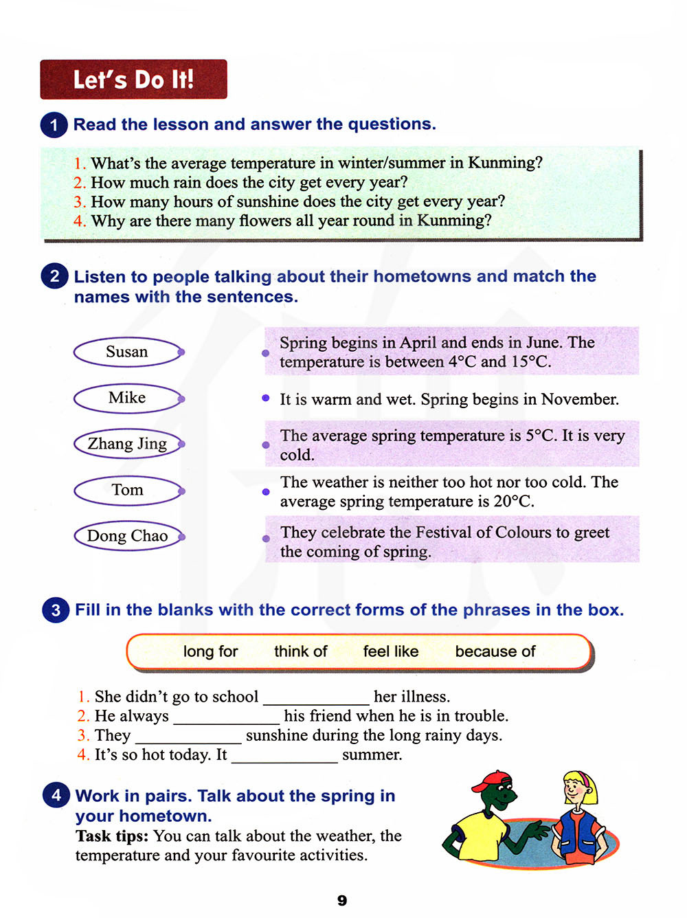 作业要点:你可以谈论天气、温度和你喜欢的活动。