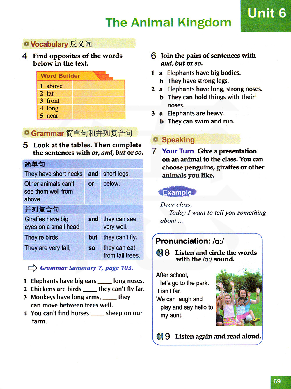 看下面的表格,然后用or,and,but或者so完成句子。