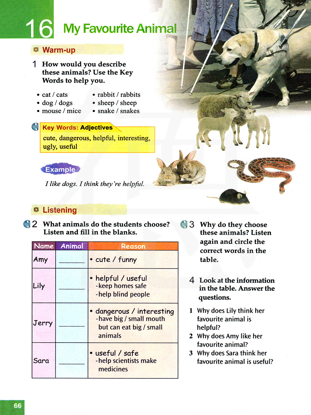 为什么莉莉觉得她最喜爱的动物很有用?为什么艾米喜欢她最喜爱的动物?