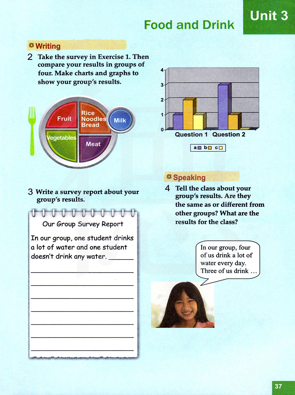 使用练习1中的调查制作图来展示你们的小组的结果。