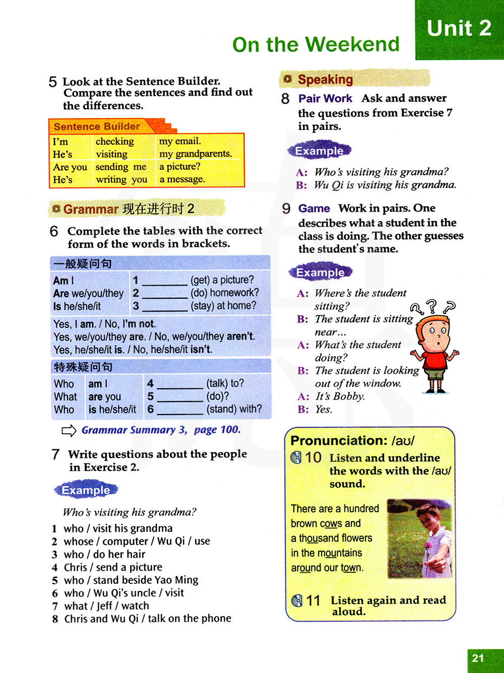 听录音,并且在发/au/音的单词下面画横线。