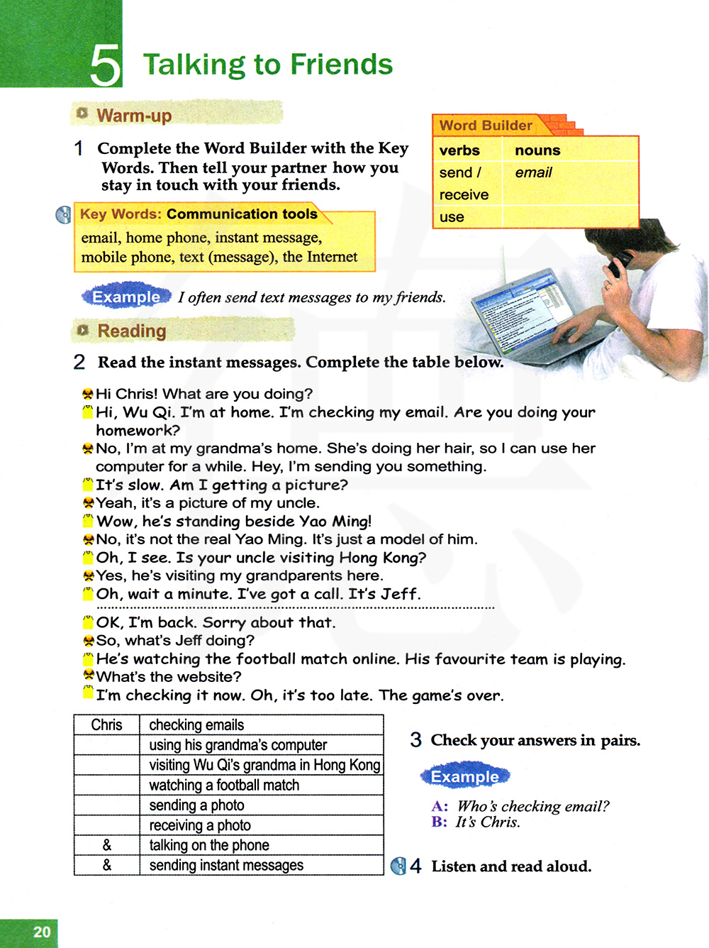 使用关键词完成单词生成表。然后告诉你的伙伴你怎样和你的朋友保持联系。