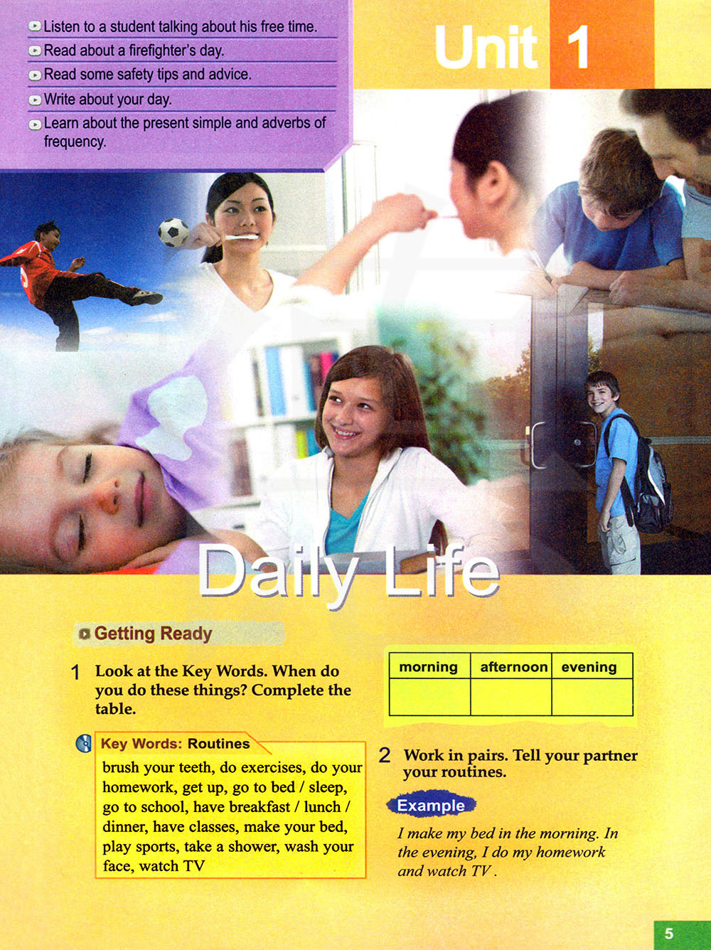 否定句→We don’t get up at 7:00 e very morning.