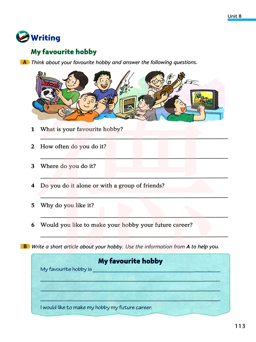 写一篇短文,说说你的爱好,使用A中的信息来帮助你。