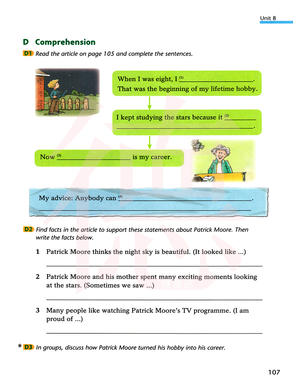 分组,讨论帕特里克.摩尔的爱好是怎样变成他的职业的