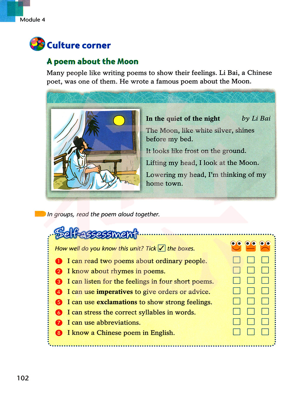 我能听出四首短诗里的感情。我能用祈使句下命令或给建议。