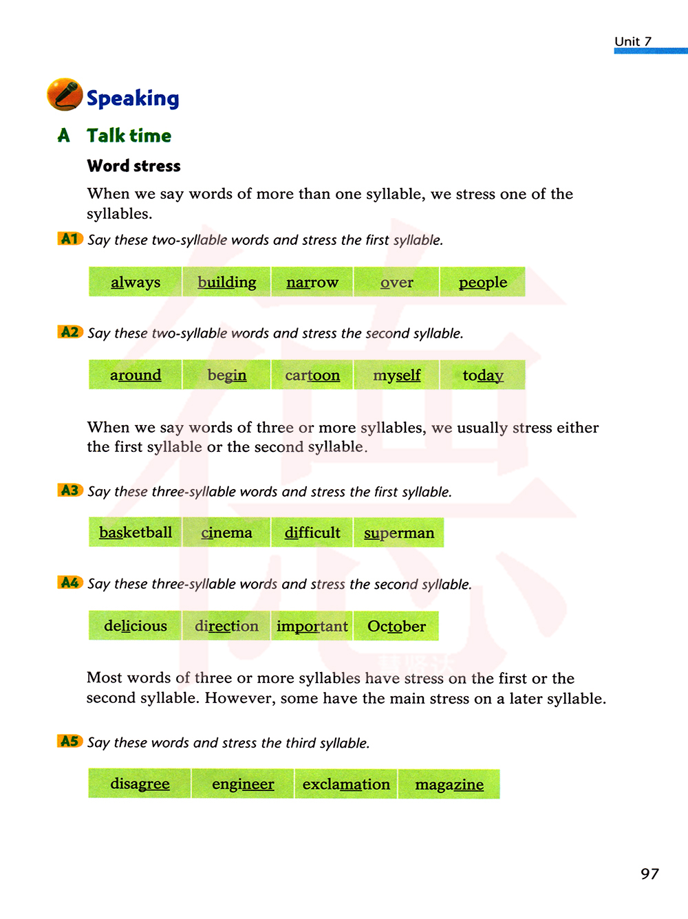 当我们说超过一个音节的单词时,我们会把重音放在其中一个音节上。