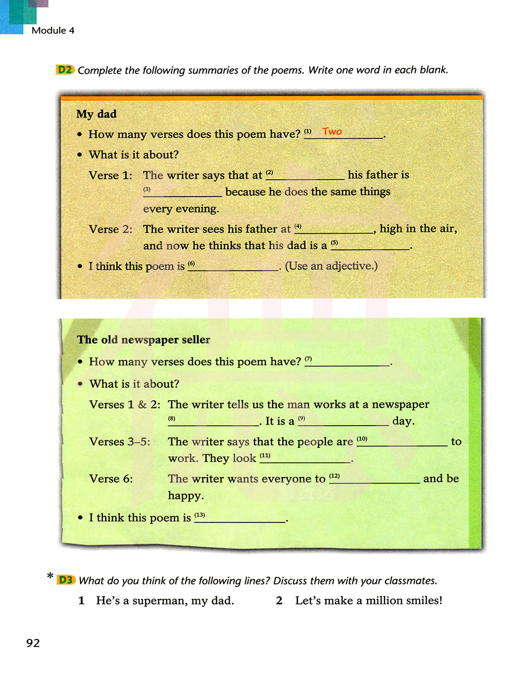 完成下面对诗歌的总结,在每个空格上写一个单词。