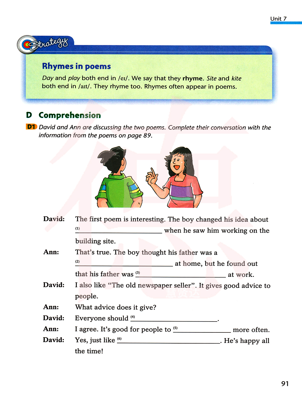 戴维和安在谈论这两首诗。用89页的诗歌里的信息完成他们的对话。