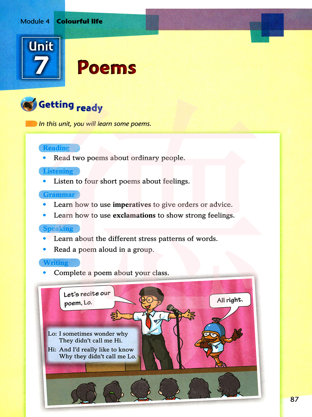 4. Read a poem aloud in a group. 在小组里大声读诗.