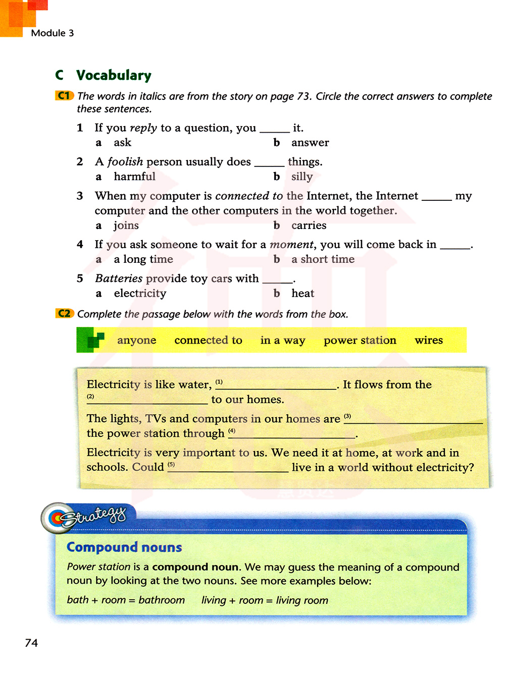 下面的斜体单词来自第73页的文章。圈出正确的答案,将这些句子补充完整。