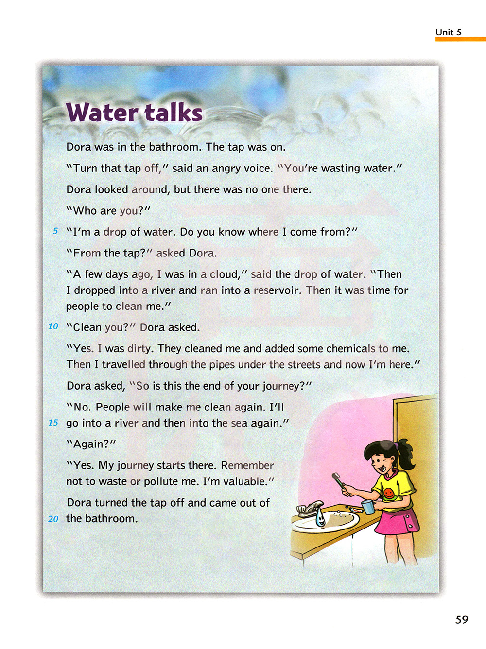 “我是一滴水。你知道我来自哪吗?”“来自水龙头?”多拉问。