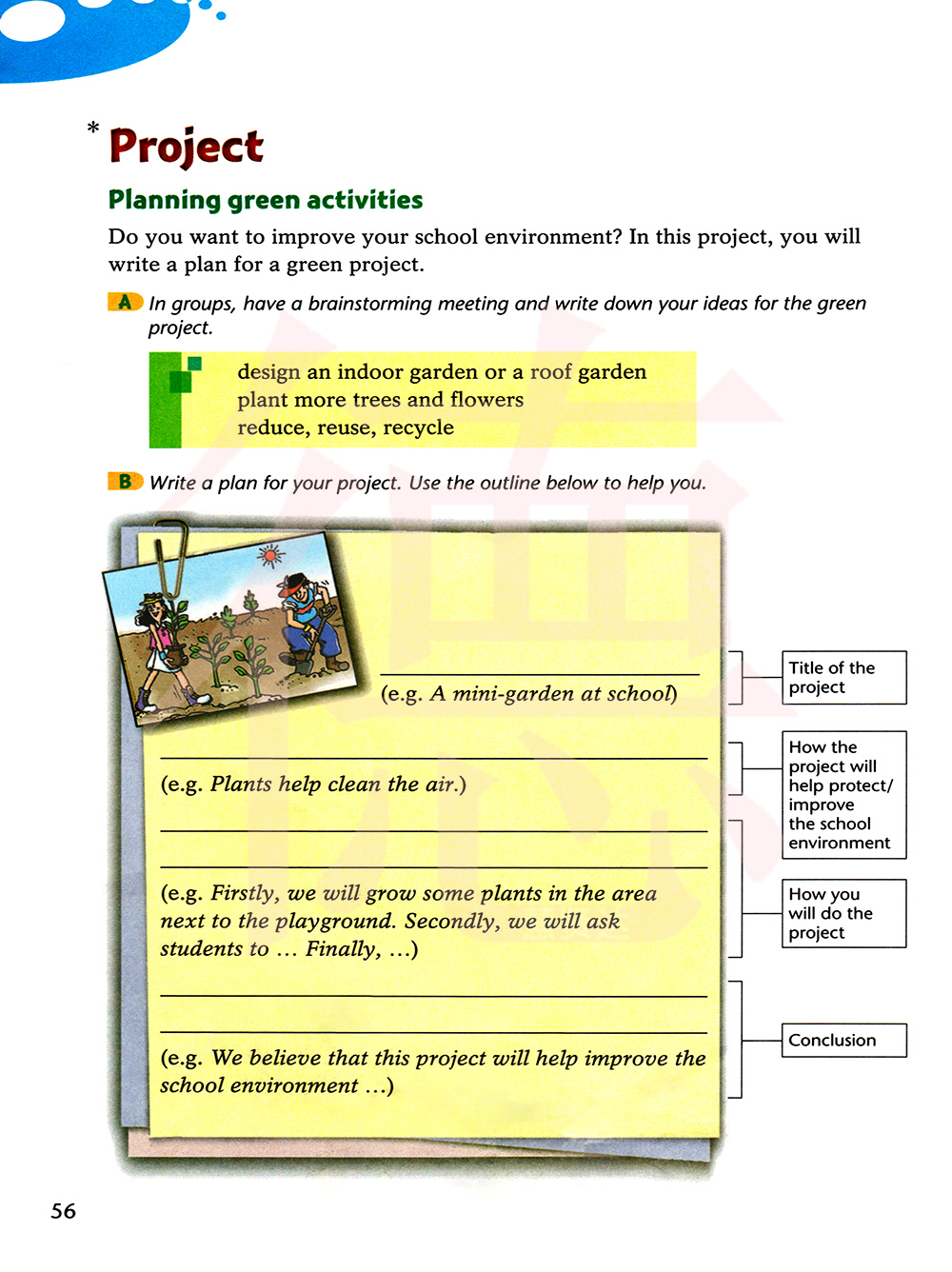 你想改善你学校的环境吗?在这个课题中,你将写一份绿化行动的计划。
