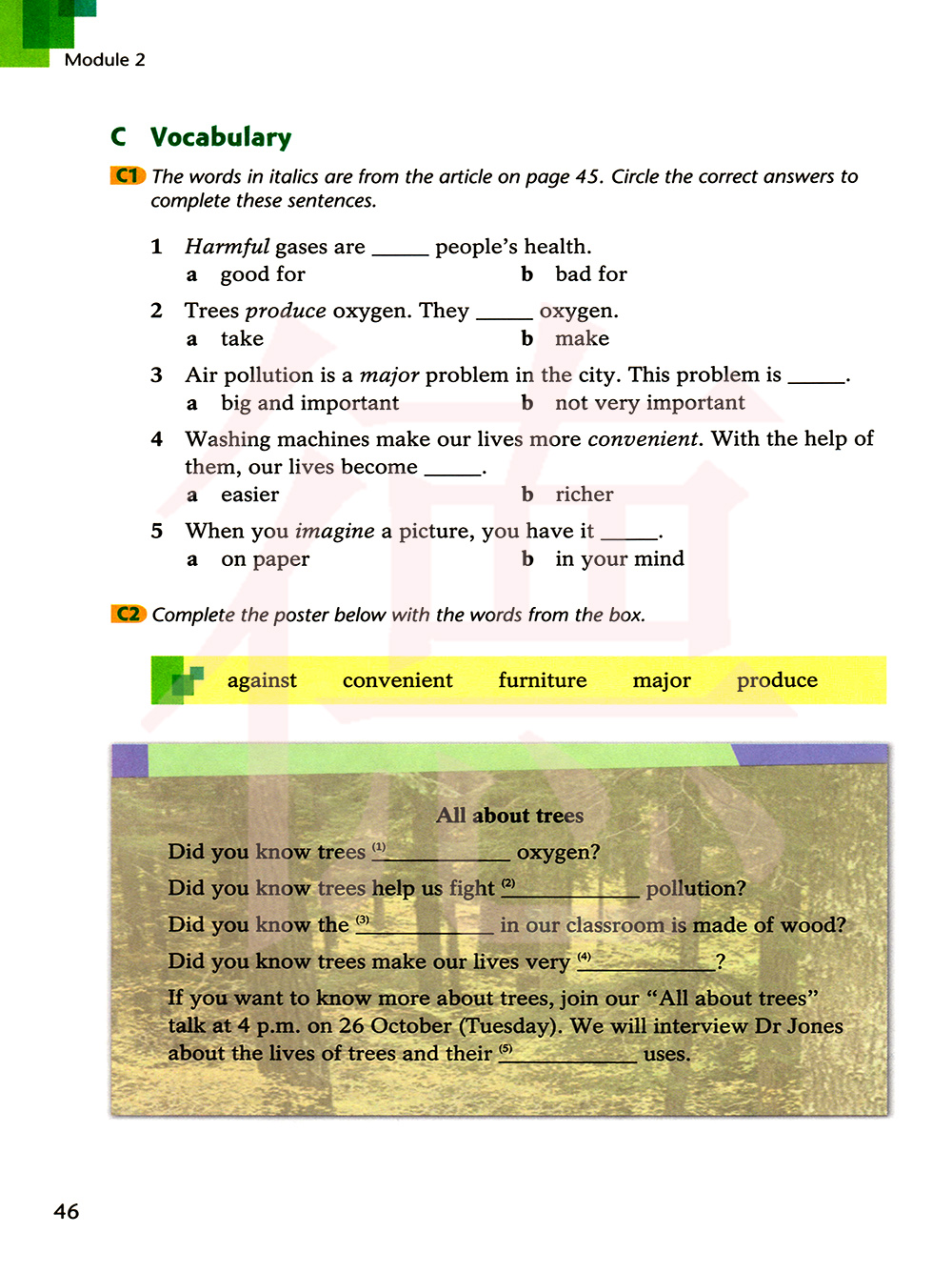 这些斜体的单词来自45页的文章。圈出正确的答案,将这些句子补充完整。