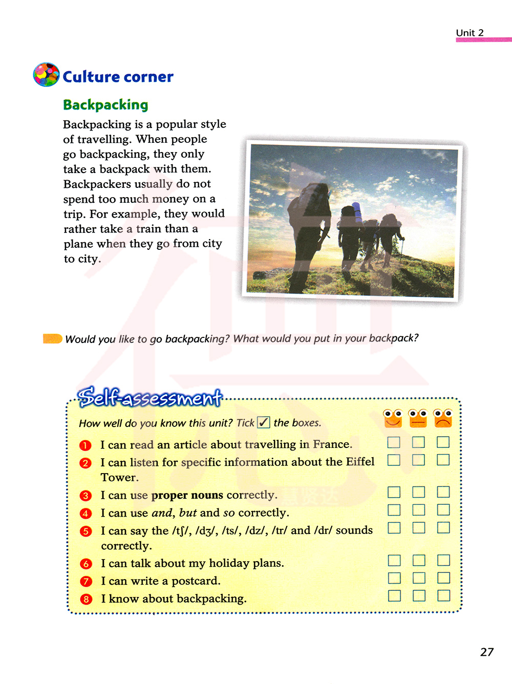 我能写一张明信片。我了解背包旅行。