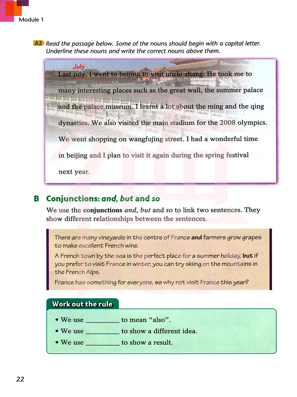 阅读下面的文章。一些名词应以大写字母开头。在这些名词下画线并在它们上方写出正确的名词。