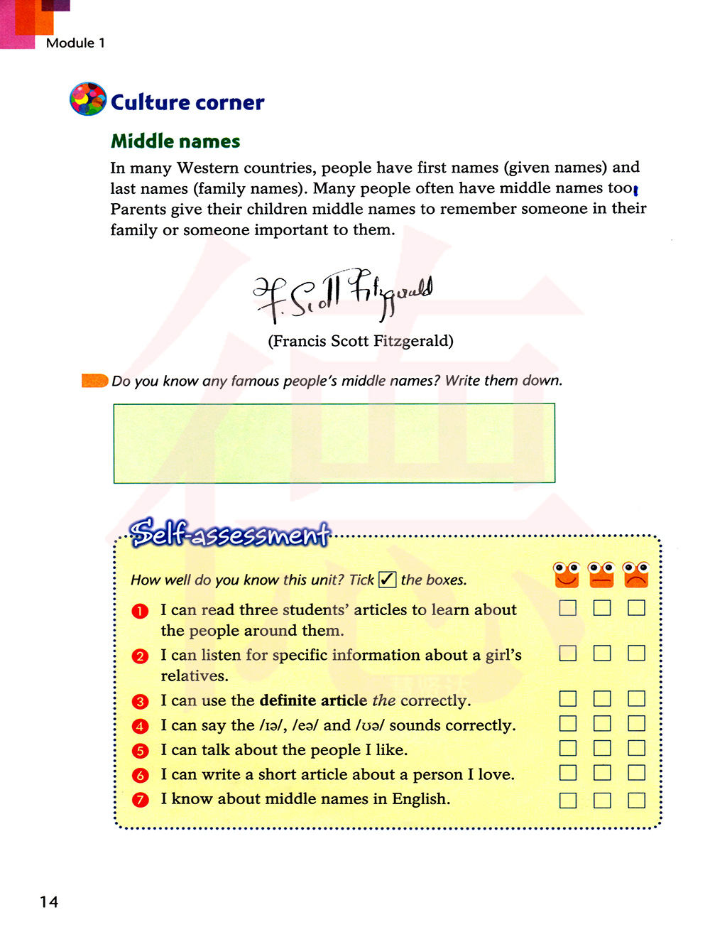 你知道哪些名人的中间名?把他们写下来。