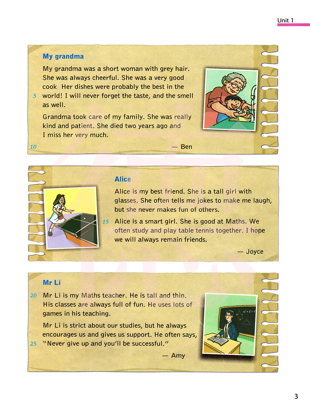 李老师对我们的学习要求很严格,但他总是鼓励我们,给我们支持。他常说:"永远不要放弃,你就会成功。" 埃米
