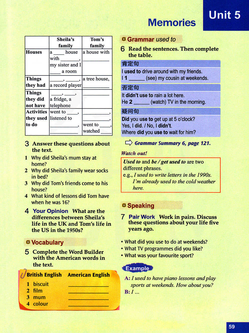 两人一组讨论,讨论这些关于你五年以前的生活问题。