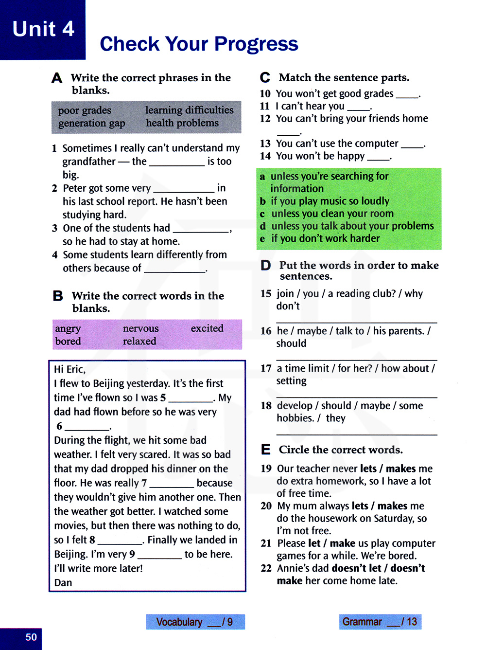 除非你打扫你的房间。 除非你谈谈你的问题。 如果你不努力学习。