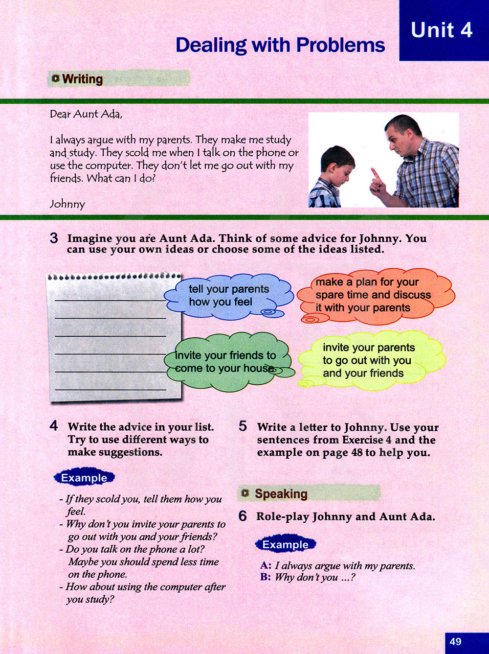 想象你是艾达阿姨。思考一下给约翰尼的建议。你可以用你自己的想法或者从裂出主意中选择一些。