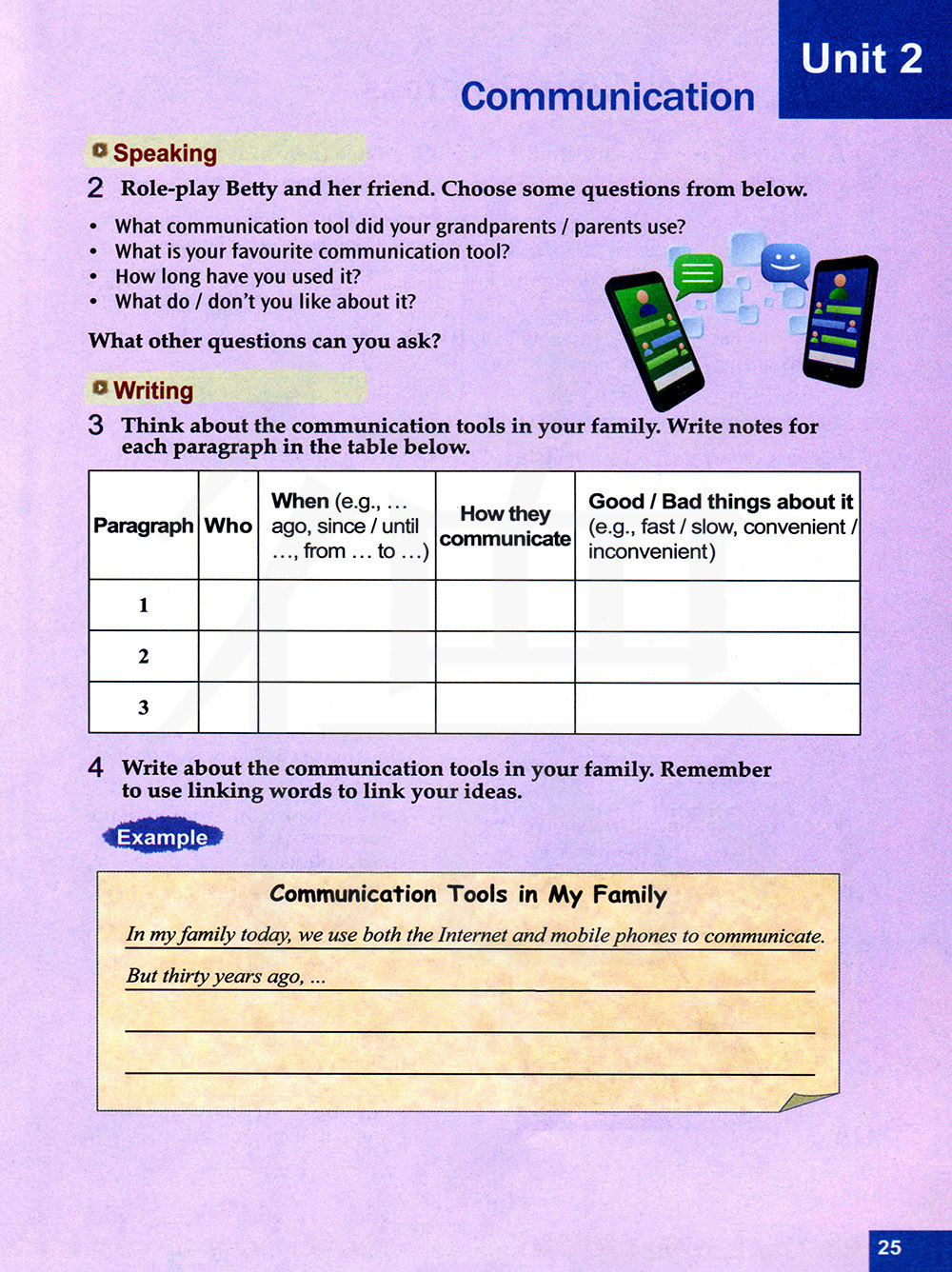 想想你们家的通讯工具,在下面的表格中年国内给每一段做笔记。