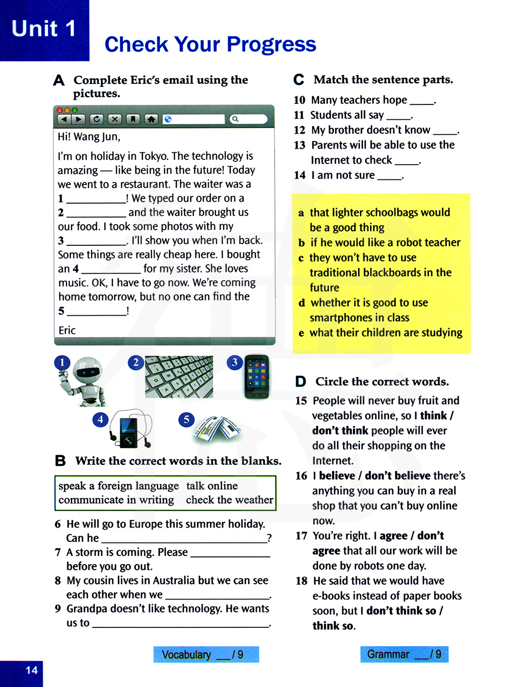 根据图片完成埃里克的邮件。