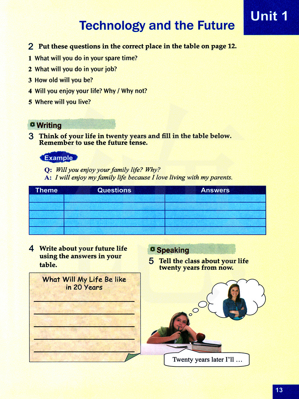 想想你二十年后的生活然后填写下面的表格。记得使用将来时。