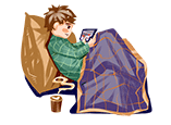 例句:They sprawl at ease across the sofa, arms draped over the back.