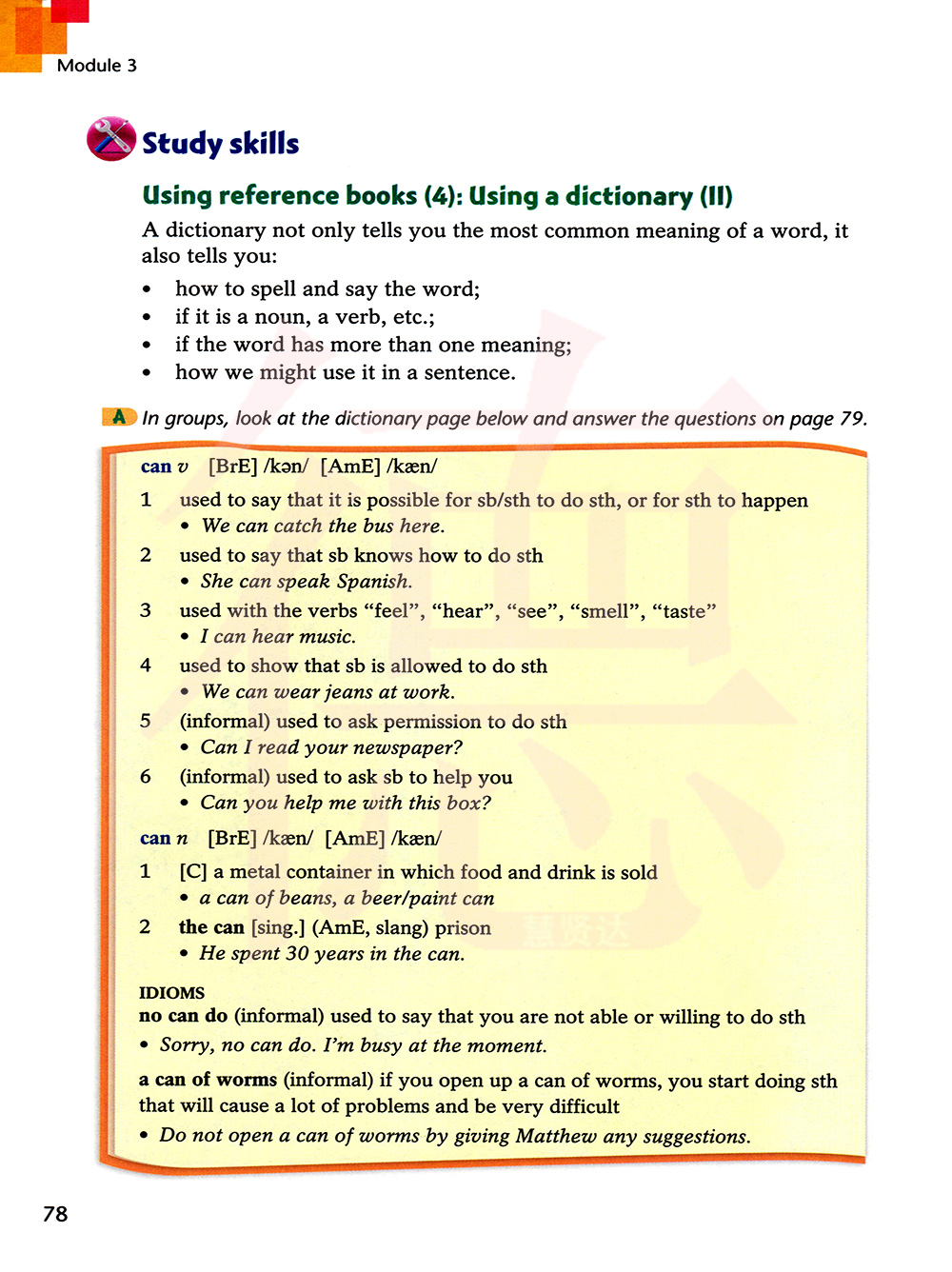 以小组为单位,看下面的字典的页面并回答79页的问题。