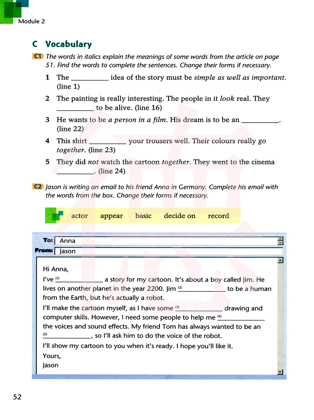 詹森再给他在德国的朋友安娜写邮件。用方框里的单词完成她的邮件。如果有需要可改变这些词语的形式。