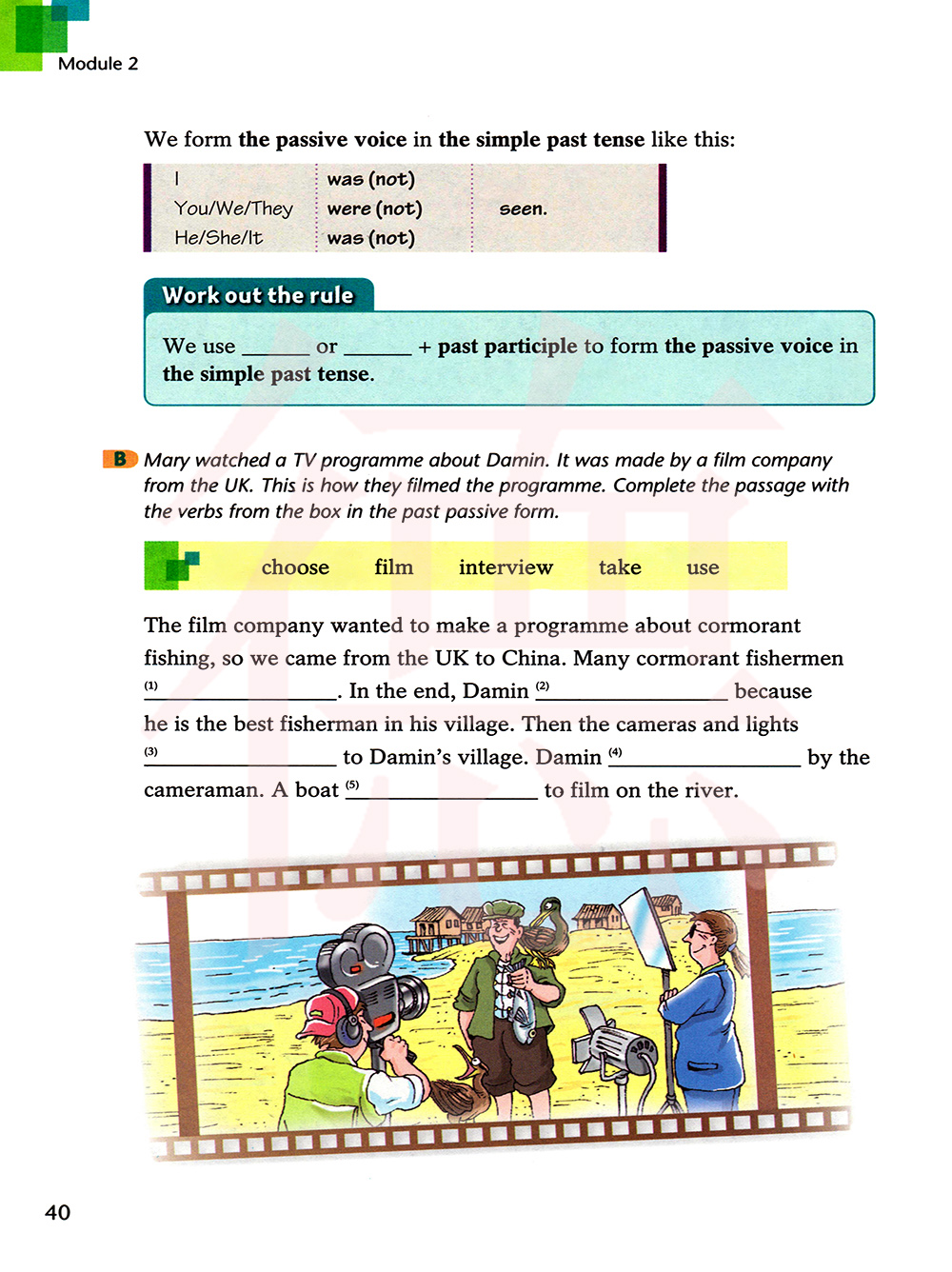 玛丽看了一个关于大民的电视节目。这是由一家英国的电影公司制作的。这讲述了他们如何制作这个节目。用方框里动词的被动语态完成这篇文章。