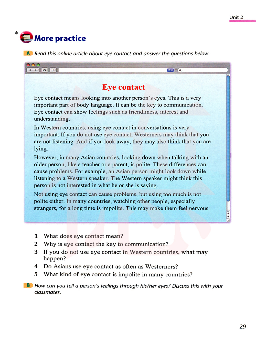 读这篇关于“眼神交流”的网络文章并回答下列问题。