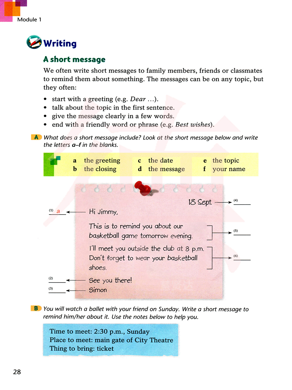 我们将常给家人、朋友或同学写短信,提醒他们某些事情。这些信息可以是关于任何主体的,但是他们经常: