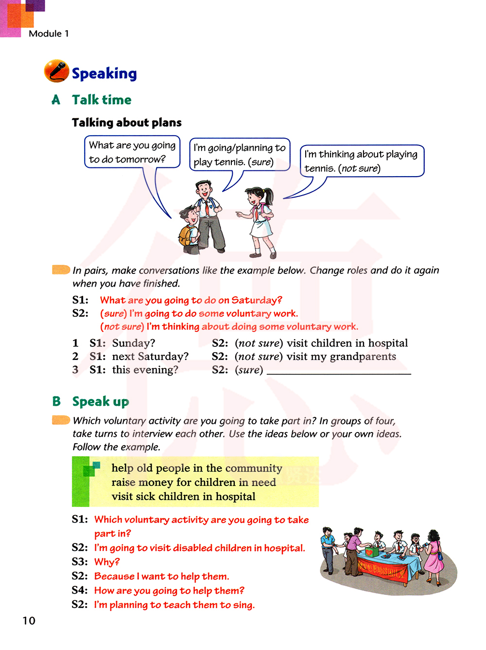 你打算参加哪种义务性工作?四人一组,轮流互相采访。用下面这些采访或你自己的想法,参考下面的例子。
