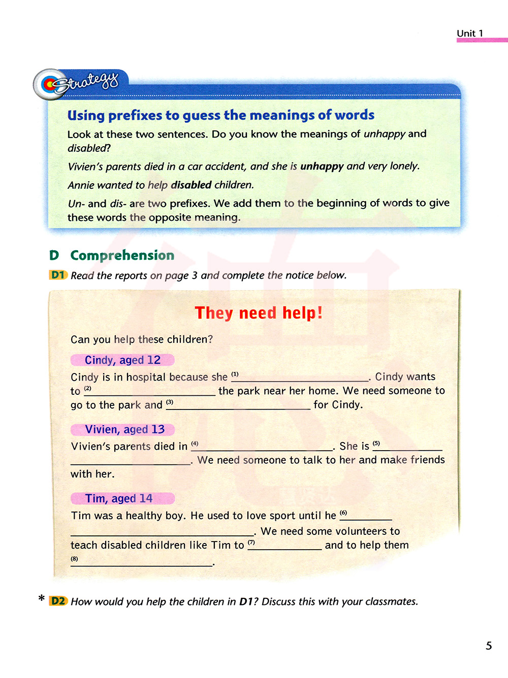 你会怎样帮助D1里提到的孩子们?和你的同学讨论。