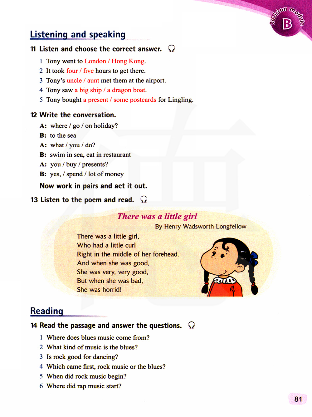 有个小女孩 额头有刘海儿 曲曲卷卷在脑门正当间儿 听话的时候,小女孩好乖好乖 可调皮时真把人吓坏!