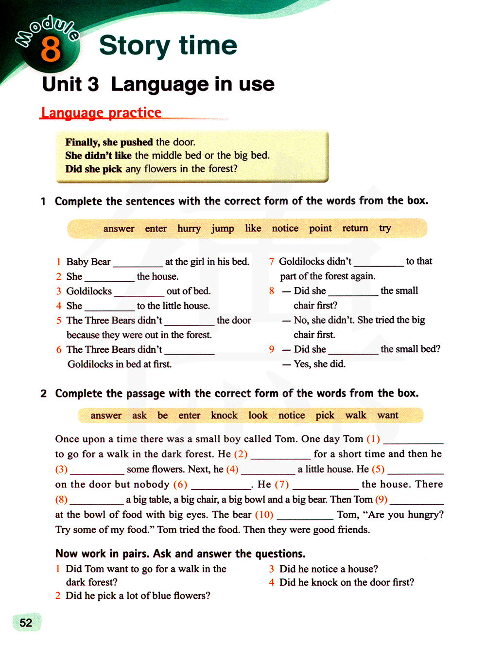 使用方框中单词的正确形式完成句子。