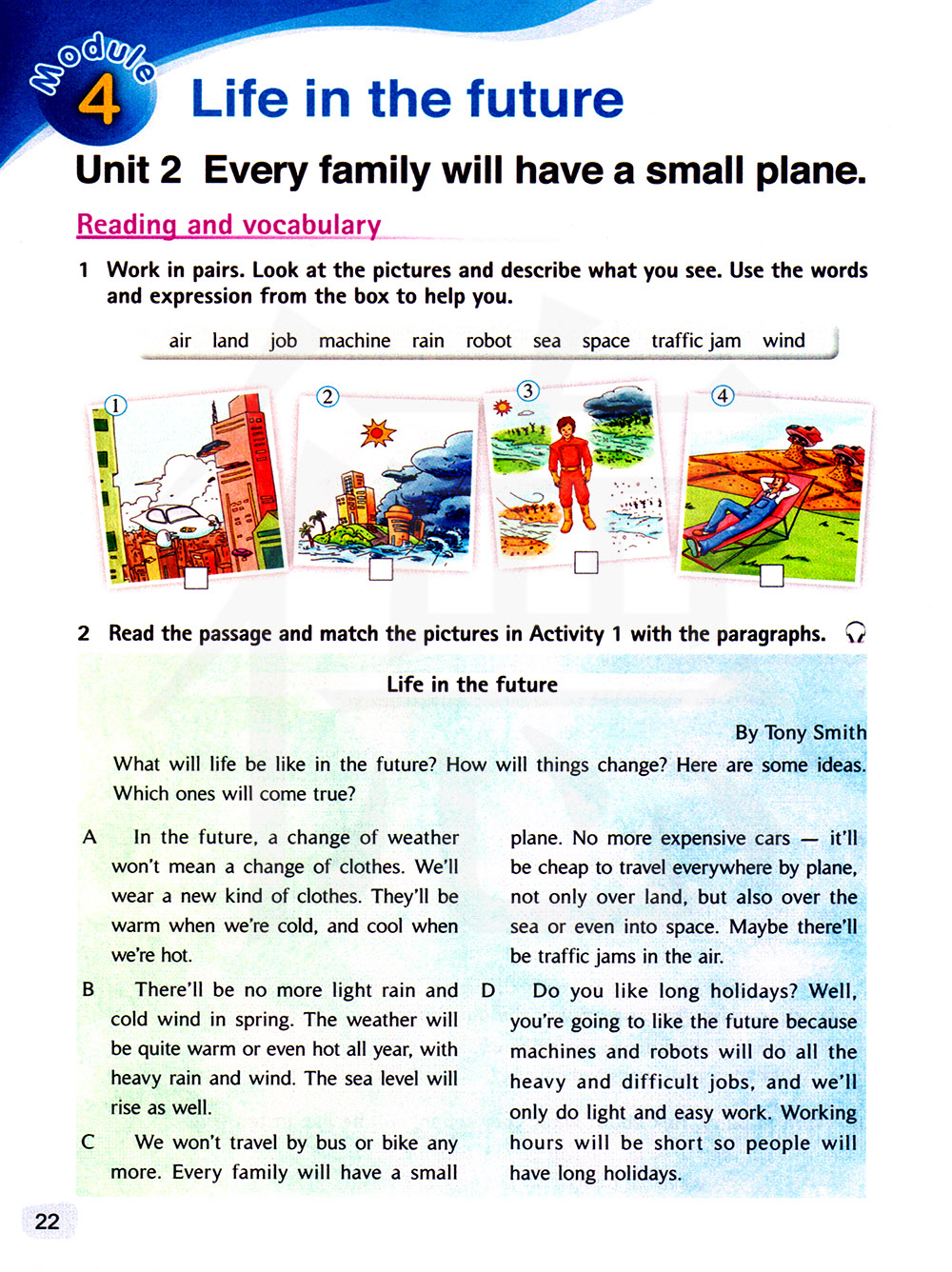 阅读文章,并将活动一中的图片与各段段落搭配起来。