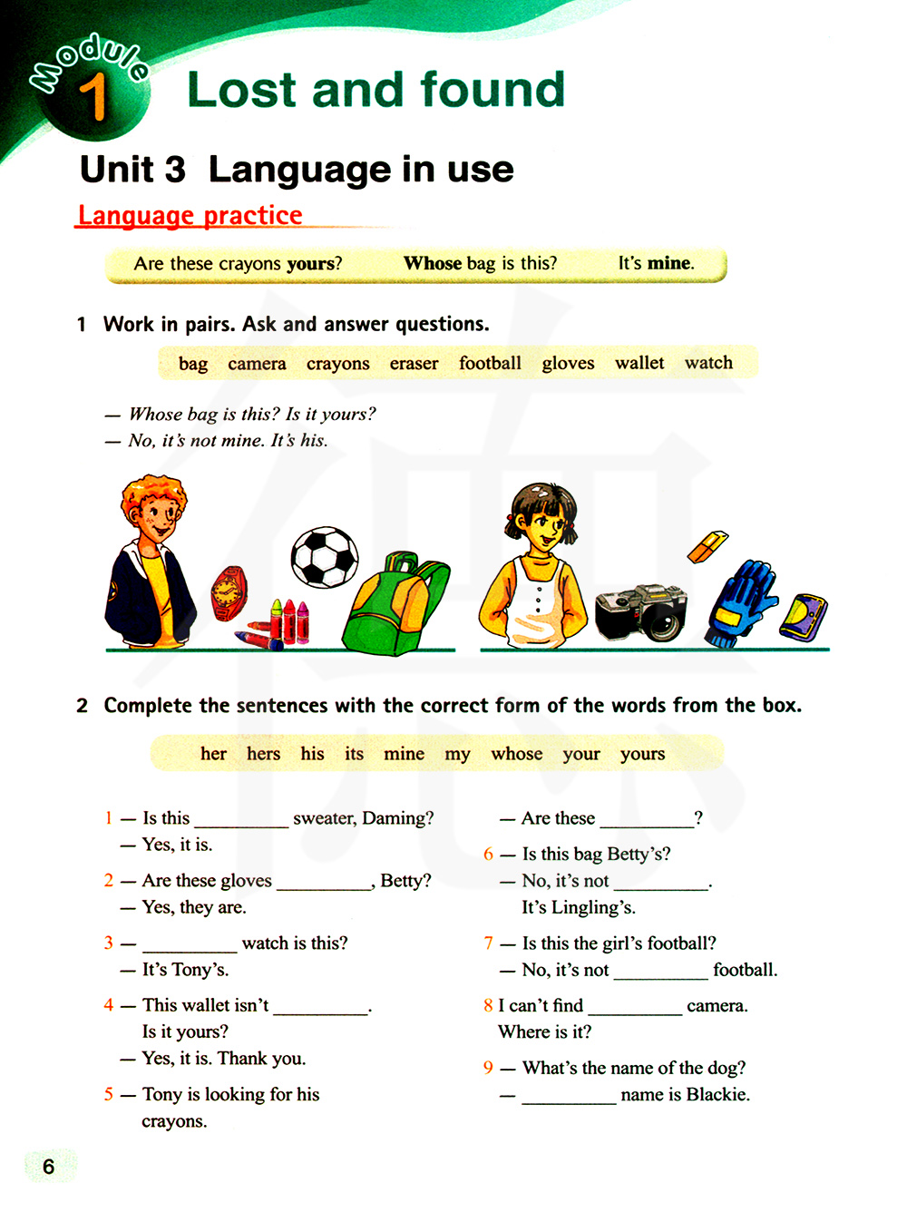 这些蜡笔是你的吗?这是谁的书包?是我的。