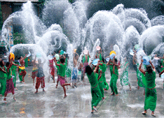Celebrants in the Water Festival douse each other with water by whatever means are available.