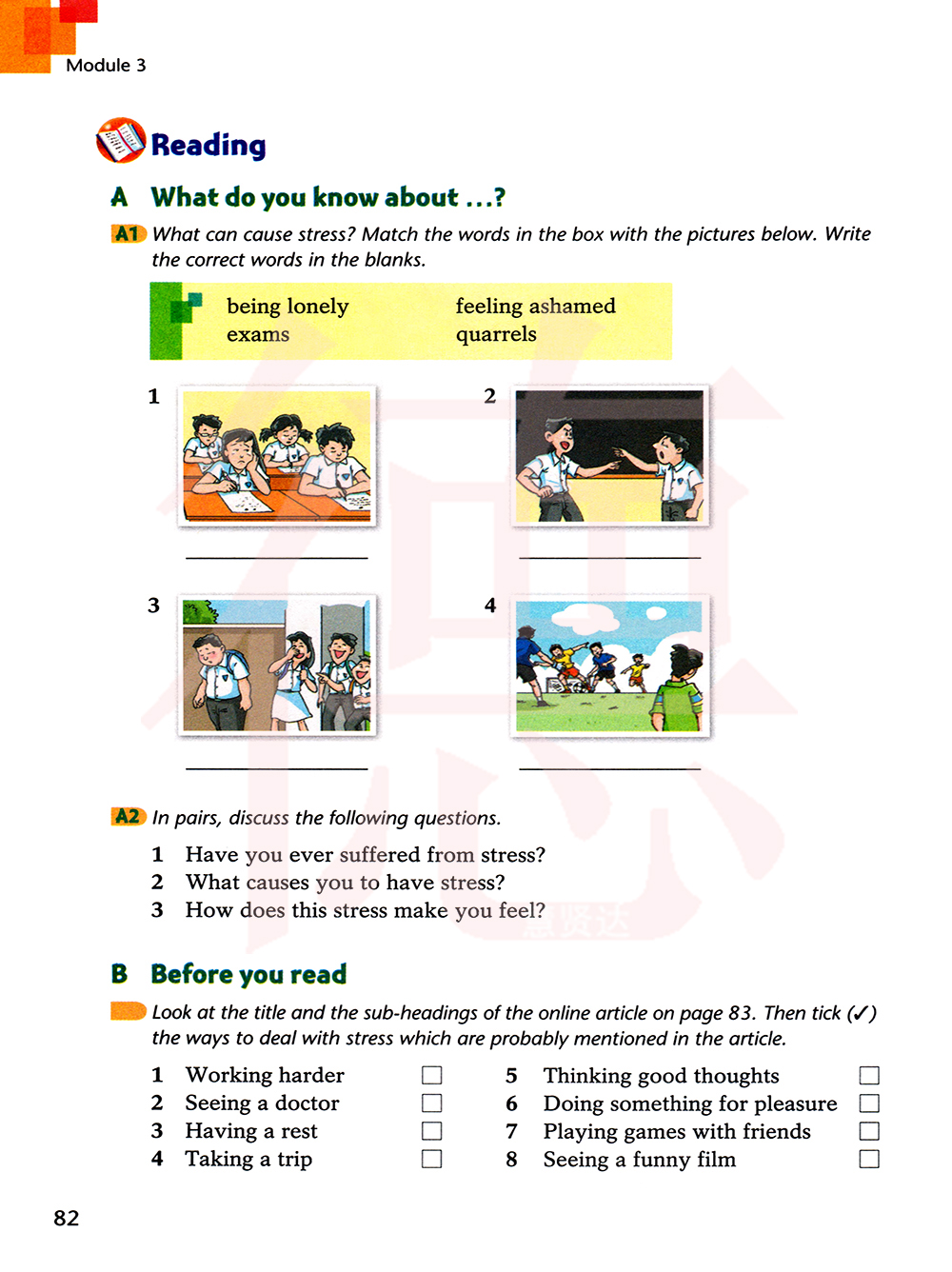 看83页的在线文章的标题和副标题。然后勾出文章中提到的缓解压力的办法。