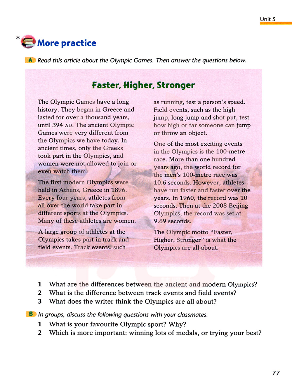 阅读这篇有关奥运会的文章,然后回答下面的问题。