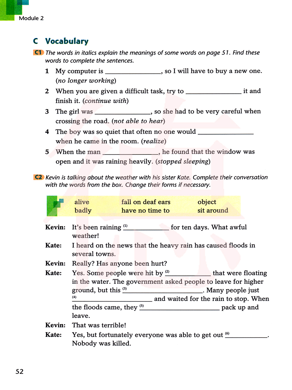斜体词汇解释了第五十一页某些单词的意思。找到这些单词补全句子。