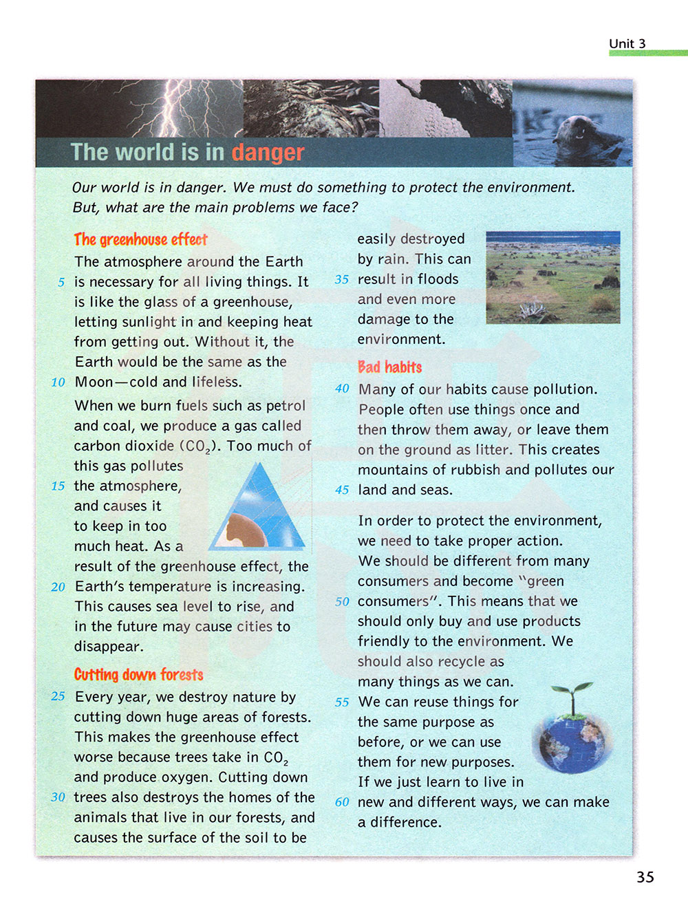 当我们燃烧燃料时,如汽油和煤炭,会产生一种叫做二氧化碳的气体。这种气体如果太多,就会对空气造成污染,并使其保持过多的热量。温室效应结果,就是地球的温度增加。这将导致海平面上升,并且未来可能会导致城市的消失。