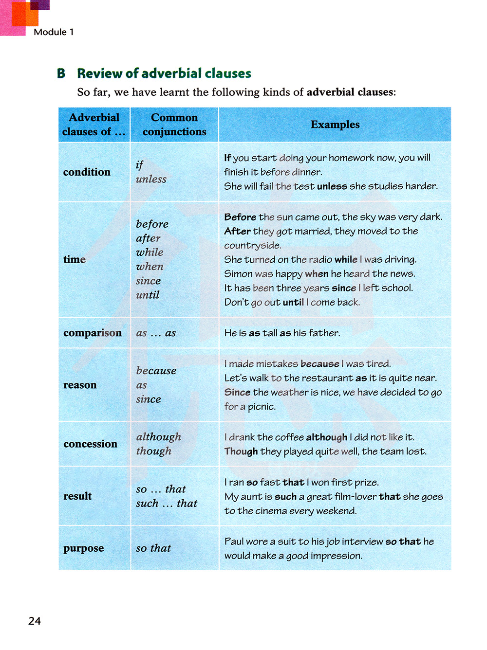 目前为止,我们学了以下几种状语从句:
