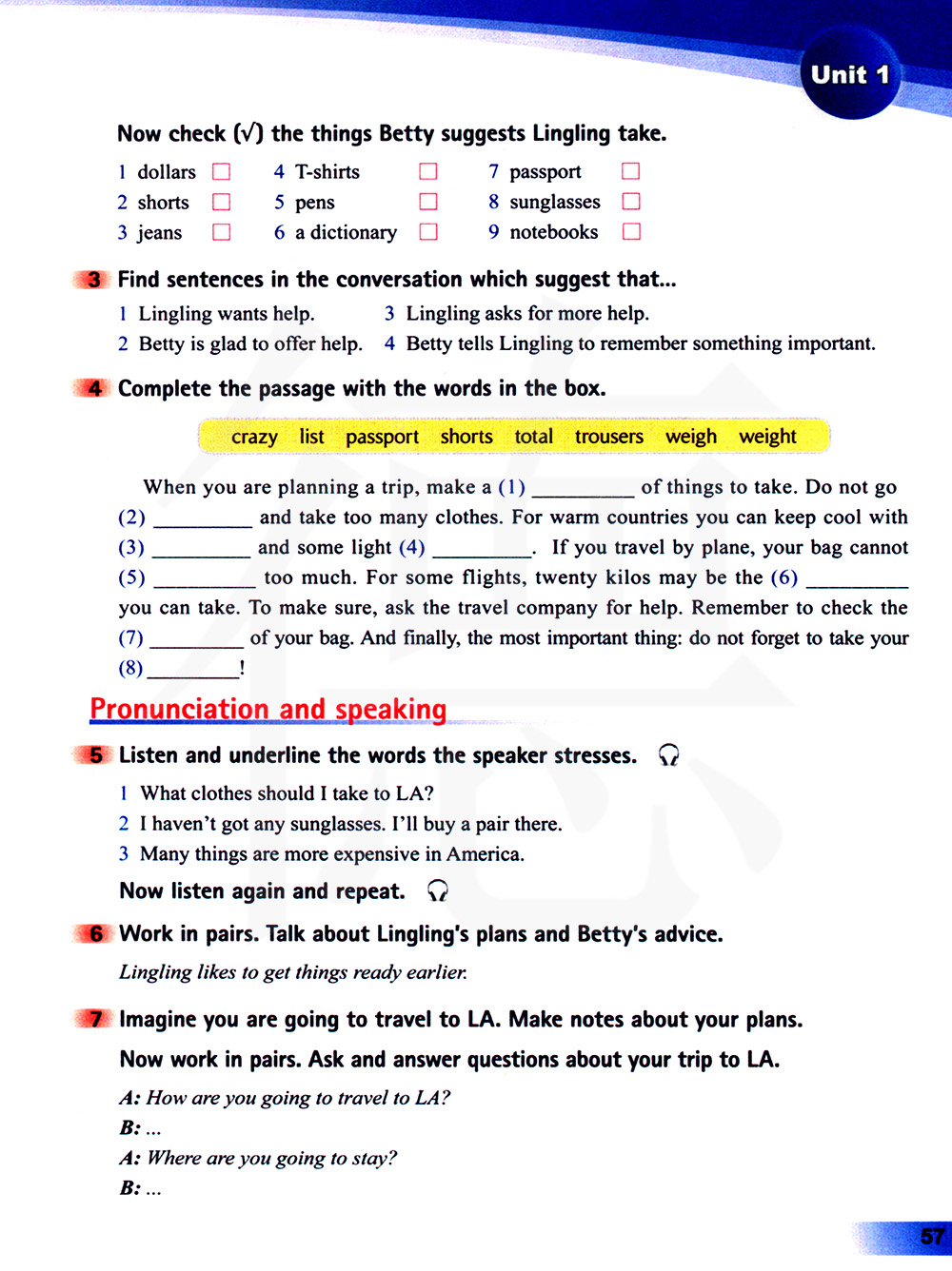 5 听录音,在讲话者重读的单词下划线。